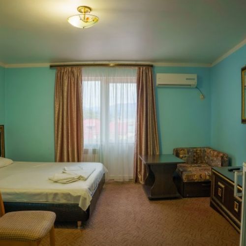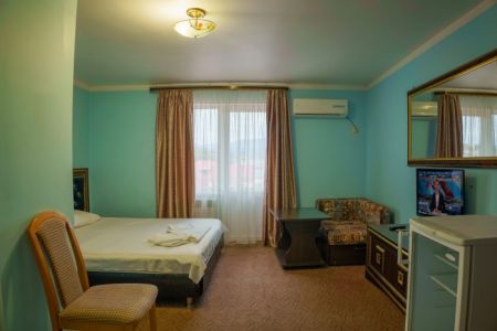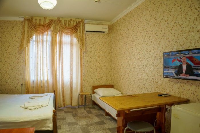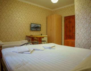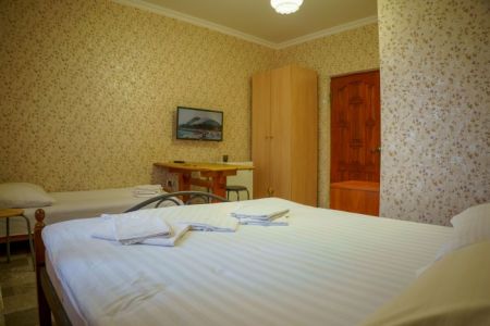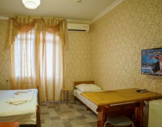 Гостевой дом представляет собой 4-этажное здание с небольшой зоной отдыха. Предлагаются для размещения 2-х и 3-х местные номера со всеми удобствами, набором мебели, телевизором, сплит-системой, холодильником.