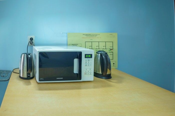 Предлагается питание в отдельно стоящем во дворе здании: завтрак, обед, ужин, а также питание по меню. Для удобства отдыхающих на этаже установлены гладильная доска, утюг, микроволновая печь, электрочайник. На всей территории работает интернет Wi-Fi.